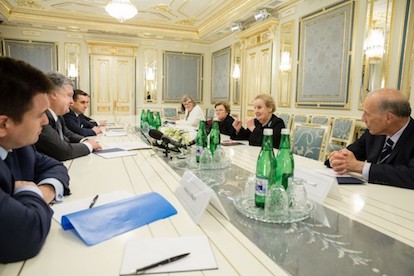 Президент України Петро Порошенко провів зустріч з делегацією Національного демократичного інституту США (НДІ) на чолі з Головою Ради директорів цієї організації, колишнім Державним секретарем США Мадлен Олбрайт.