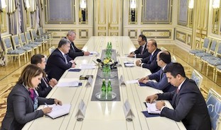 Президент України Петро Порошенко провів зустріч із Міністром закордонних справ Турецької Республіки Мевлютом Чавушоглу.