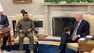 Президент України Володимир Зеленський прибув у четвер до Білого дому, щоб провести зустріч і переговори з Президентом Сполучених Штатів Джо Байденом.