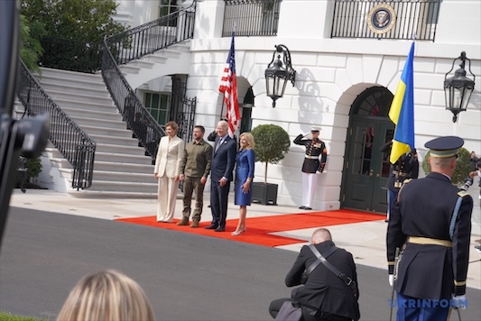 Президент США Джо Байден разом із першою леді Джилл Байден зустріли Главу Української держави Володимира Зеленського і його дружину Олену Зеленську біля південного входу до комплексу Білого дому в Вашингтоні.