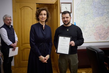 Президент України Володимир Зеленський провів у понеділок зустріч генеральною директоркою ЮНЕСКО Одрі Азуле.