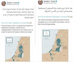 Президент США Дональд Трамп у вівторок опублікував в Twitter карту "майбутнього держави Палестини" в рамках свого плану по близькосхідному врегулюванню.