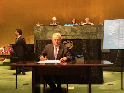 Українська делегація взяла участь у відзначенні річниці у штаб-квартирі організації у Нью-Йорку як одна з держав-засновниць ООН, повідомляє Постійне представництво України при ООН на своїй сторінці у Твіттері.