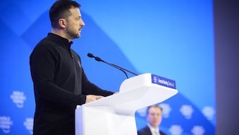 Україна захищає Європу від російської агресії Володимира Путіна і розраховує на ставлення до себе з боку Європи як до рівноправного члена, а також допомогти Європі разом стати сильнішою і відновити свої позиції у світі, заявив президент України Володимир Зеленський під час відвідування виставки "Your country first - Win with us" в Українському домі в середу в Давосі на полях Всесвітнього економічного форуму (ВЕФ).